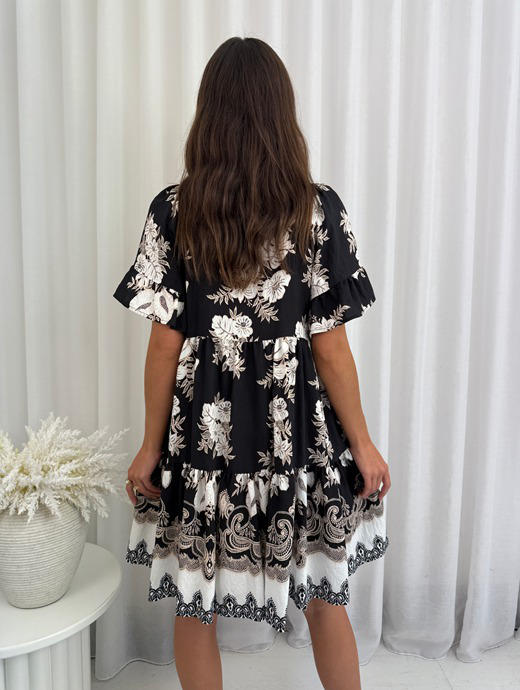 Effortlessly charming, this tiered mini dress combines playful design with practical comfort. The structured first...