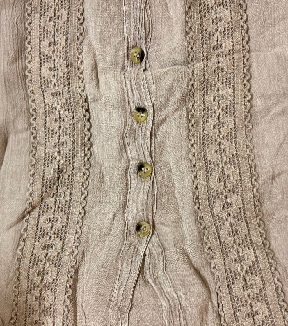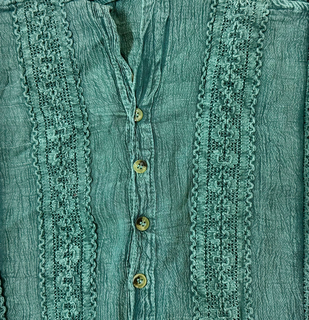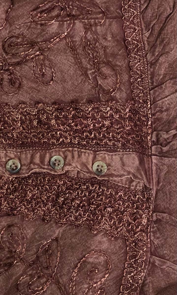 Boheme Button Up Blouse 🌿 The Boheme Blouse features rustic colours with delicate lace details...