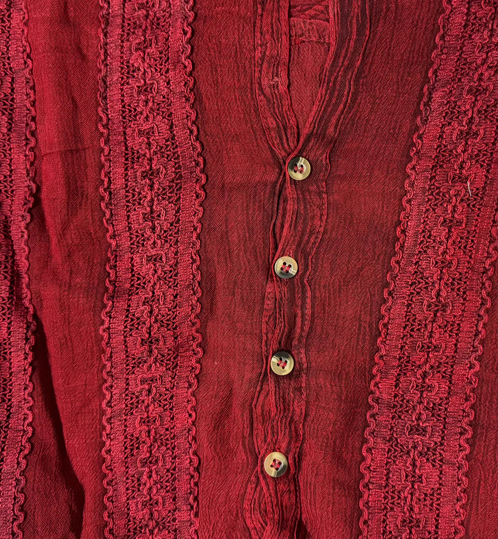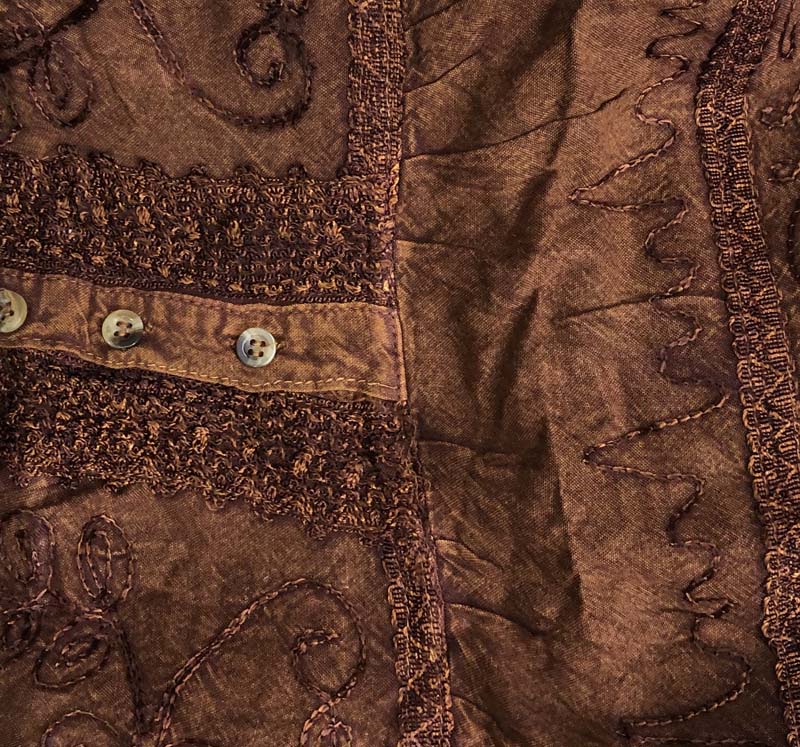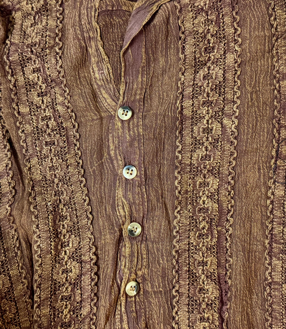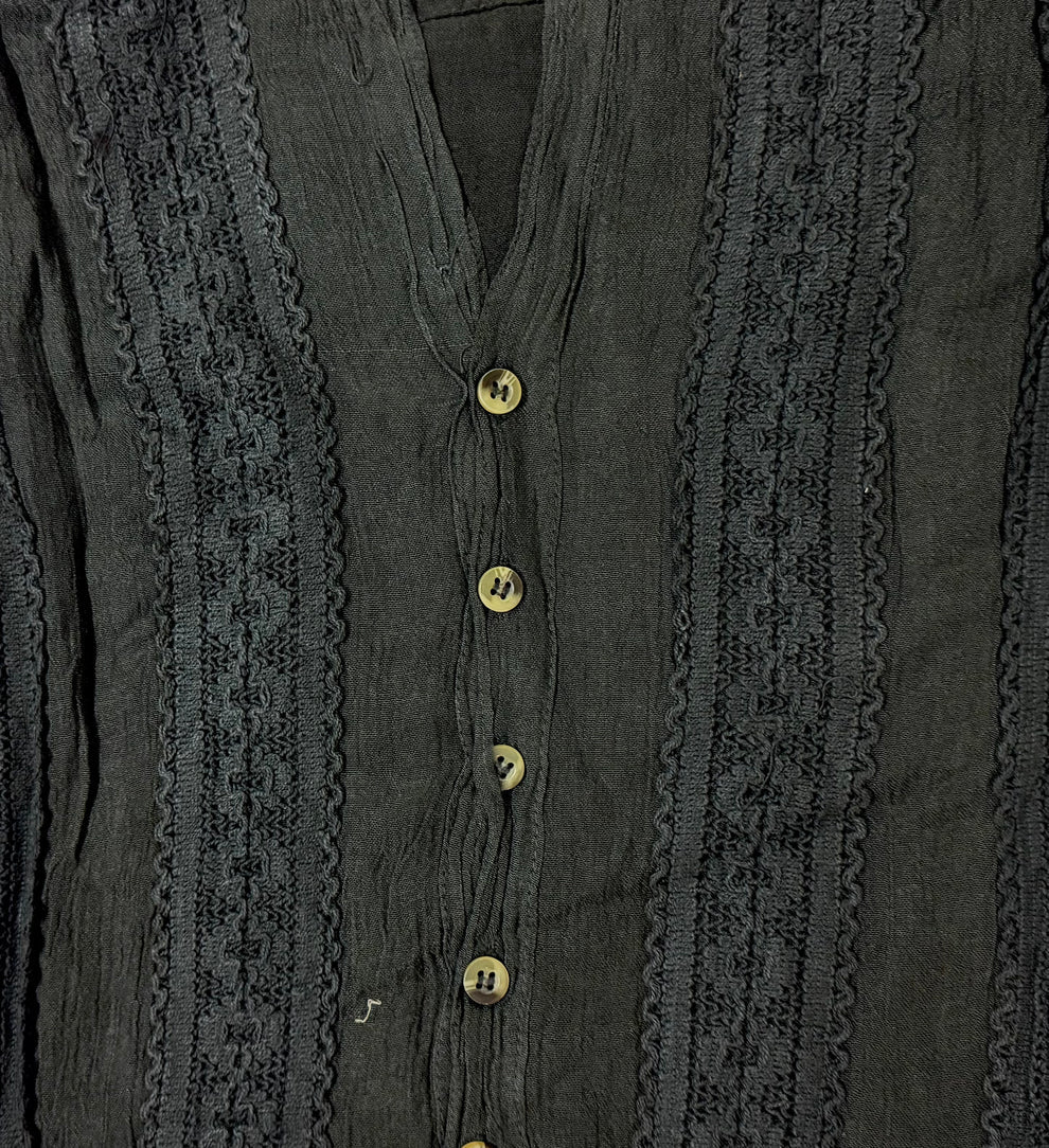 Boheme Button Up Blouse 🌿 The Boheme Blouse features rustic colours with delicate lace details...
