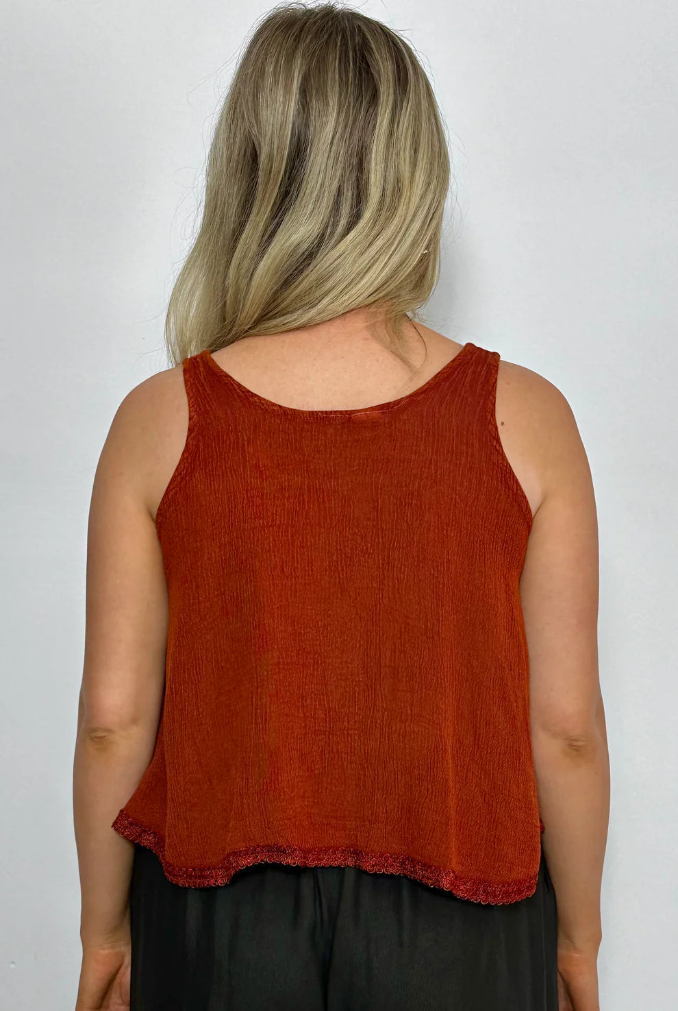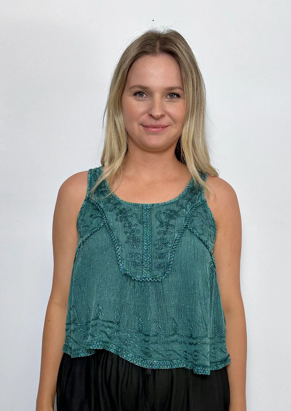 Bodhi Rayon Crepe Top 🌿 The Bodhi Top is a cropped singlet featuring delicate embroidery...