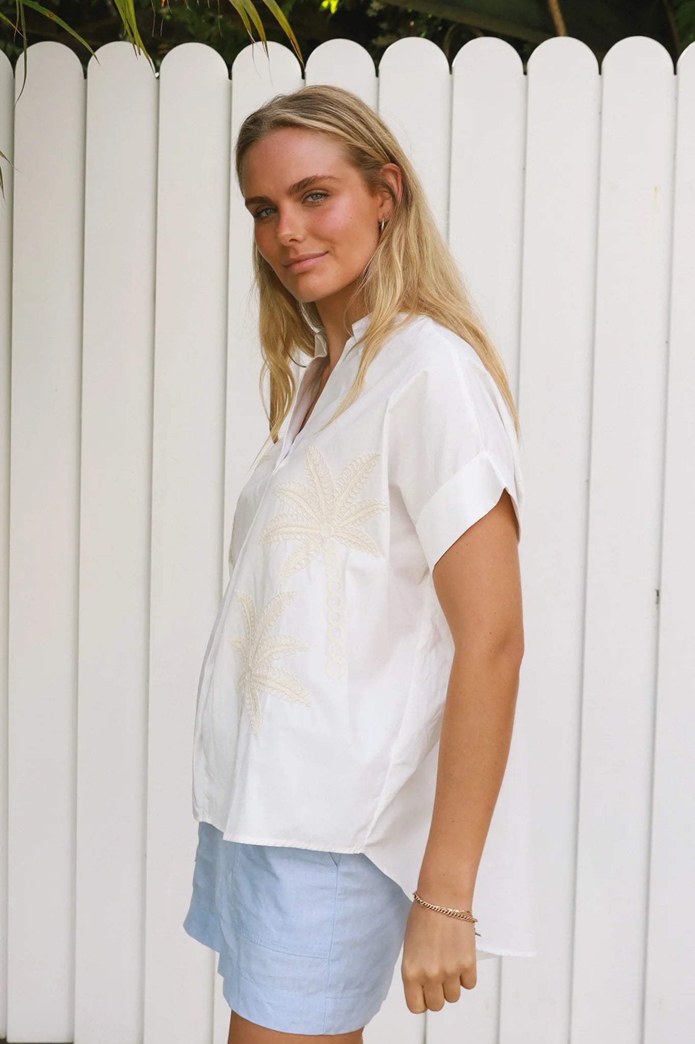 Crafted from premium 100% cotton, this embroidered palm tree top delivers breathable comfort ideal for...