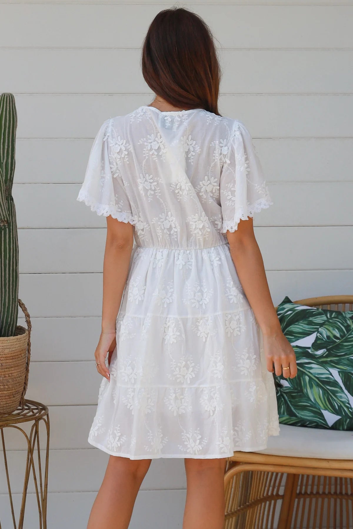 Elevate your wardrobe with the Dolcie Cap Sleeve Embroidered Mini Dress. This mini dress features...