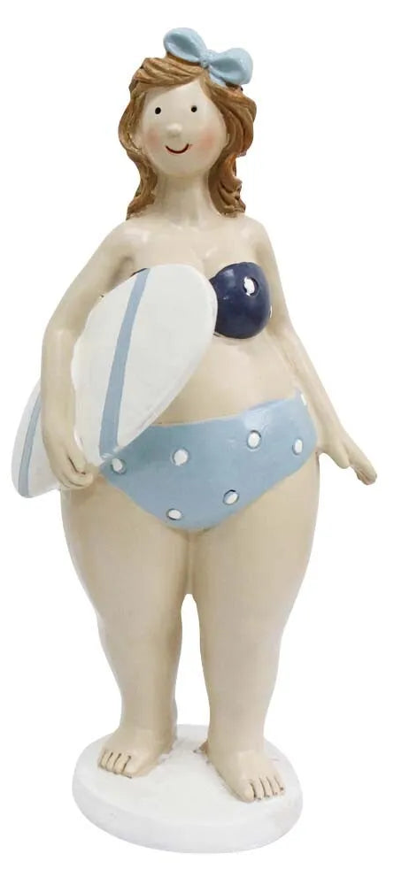 Beach Lady Audrey is a charming resin sculpture, sized 7.5x7x37cm, that captures the nostalgia of...