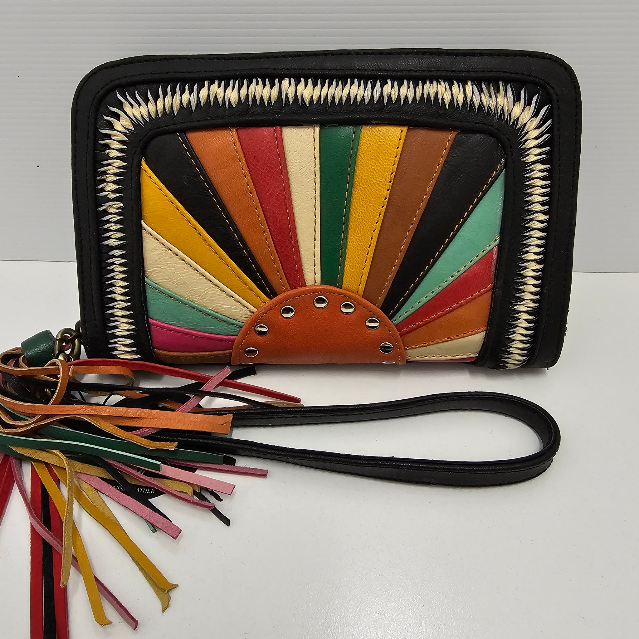 Crafted with meticulous attention to detail, this handmade leather wallet features a striking black palms...