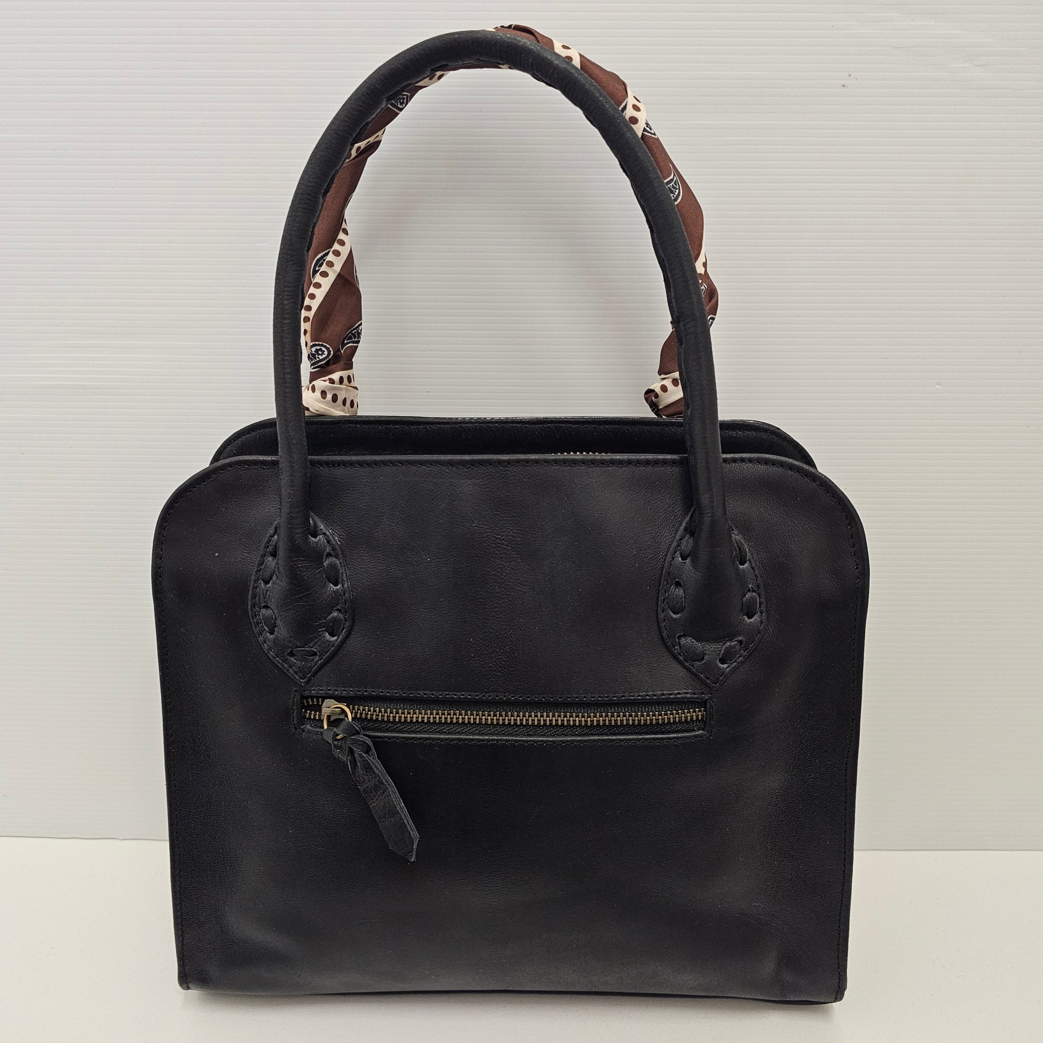 Crafted from premium leather, this carved handbag has a scarf on 1 handle but can...
