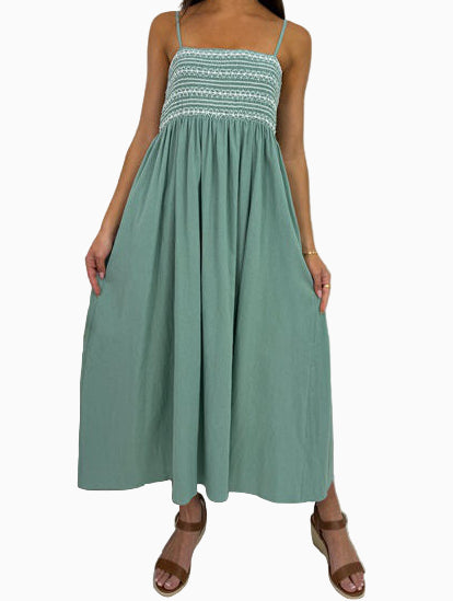 Crafted from breathable linen, the Annie Smocked Bodice Maxi Dress combines timeless elegance with everyday...