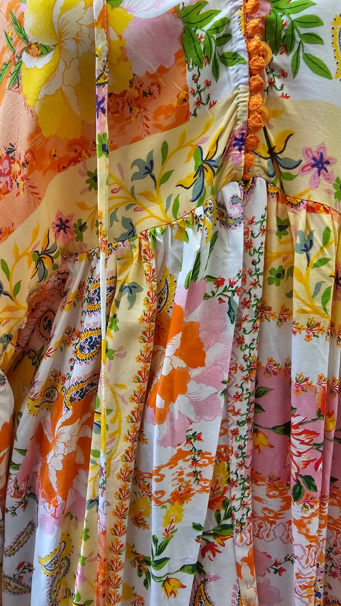 This dress is a showstopper with its fun and beautiful whimsical colours. A classic maxi silhouette, the fitted bodice...