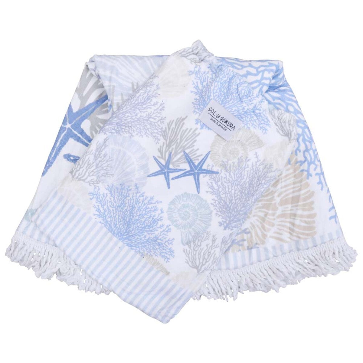 Beach towel that comes with co-ordinating drawstring bag. Machine washable on cold water/ gentle cycle....