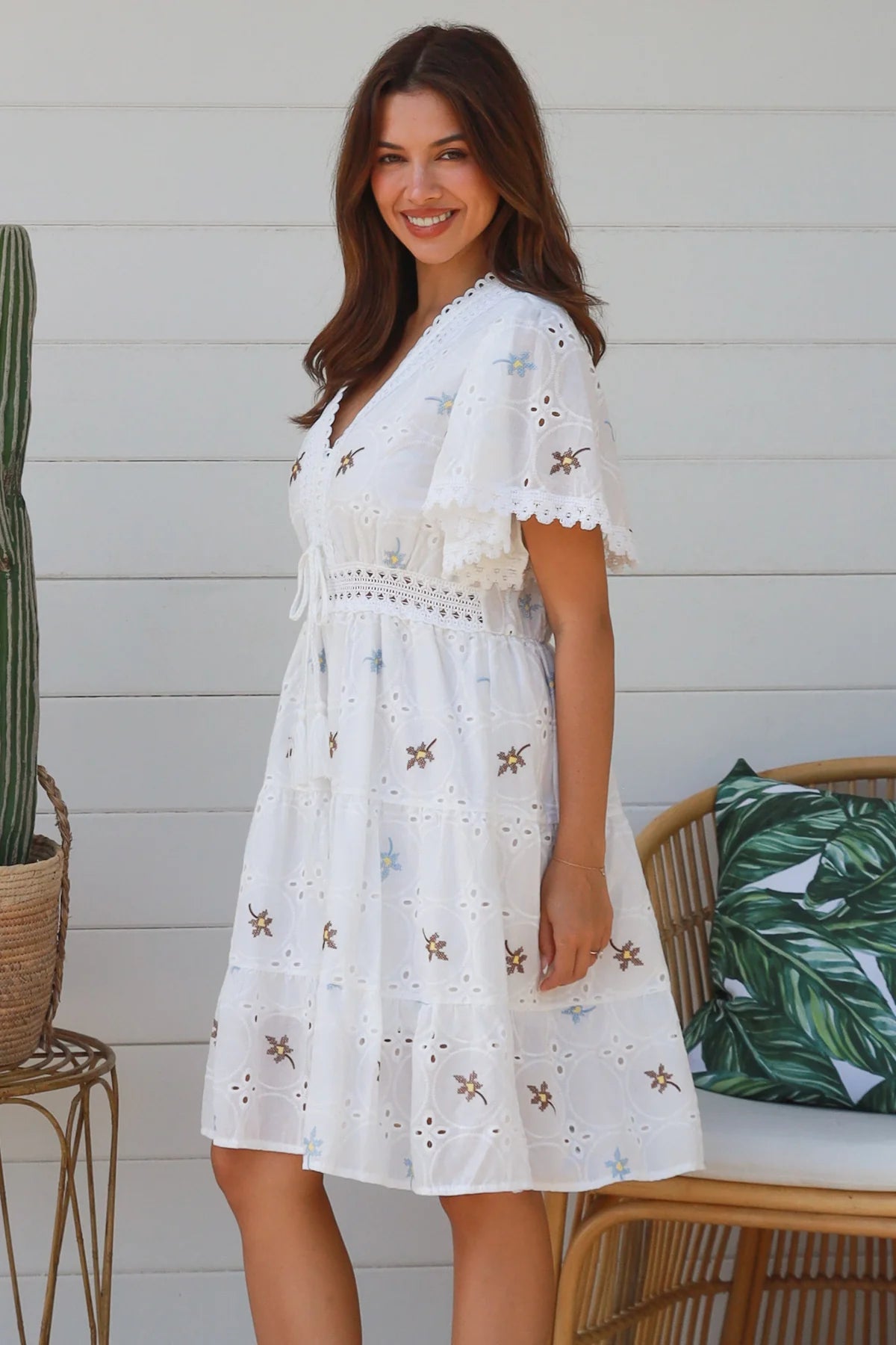 This STRAP SUN DRESS features a timeless broidre anglaise and an alluring floral print. It...
