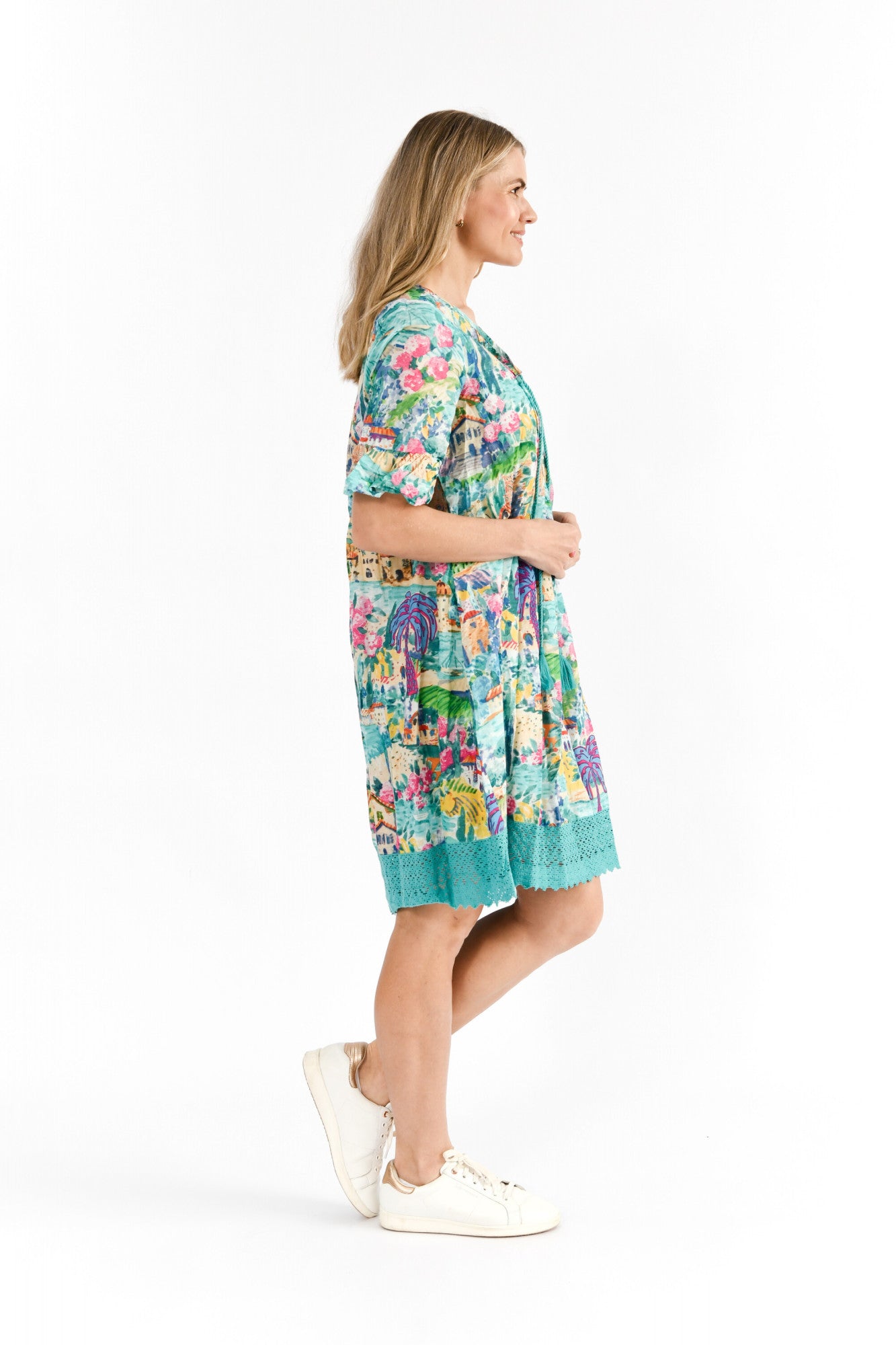 Fabric 100% Cotton Description Breezy, elegant, and full of charm — the Colette V-Neck Tassel...