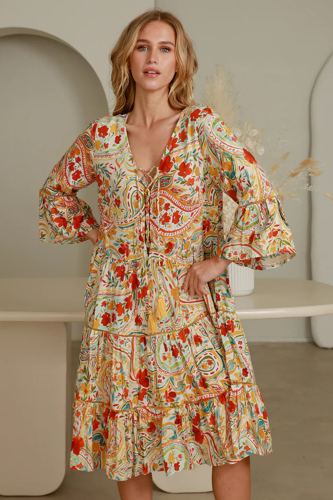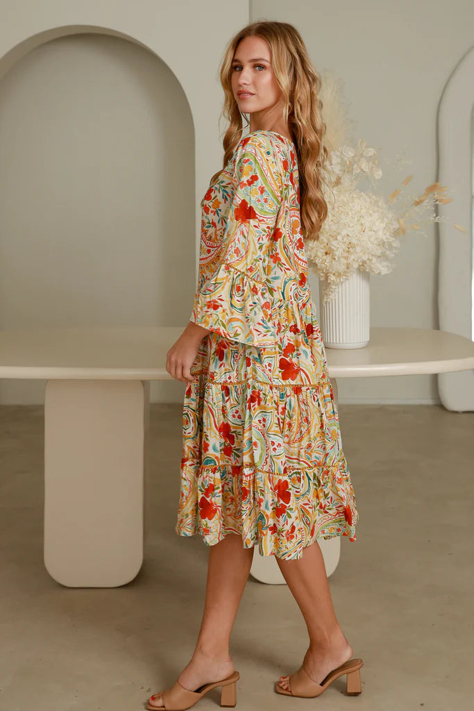 The Sienna Dress in Exclusive Sorrento Print by Mylk The Label Functional Shell Buttons Lace...