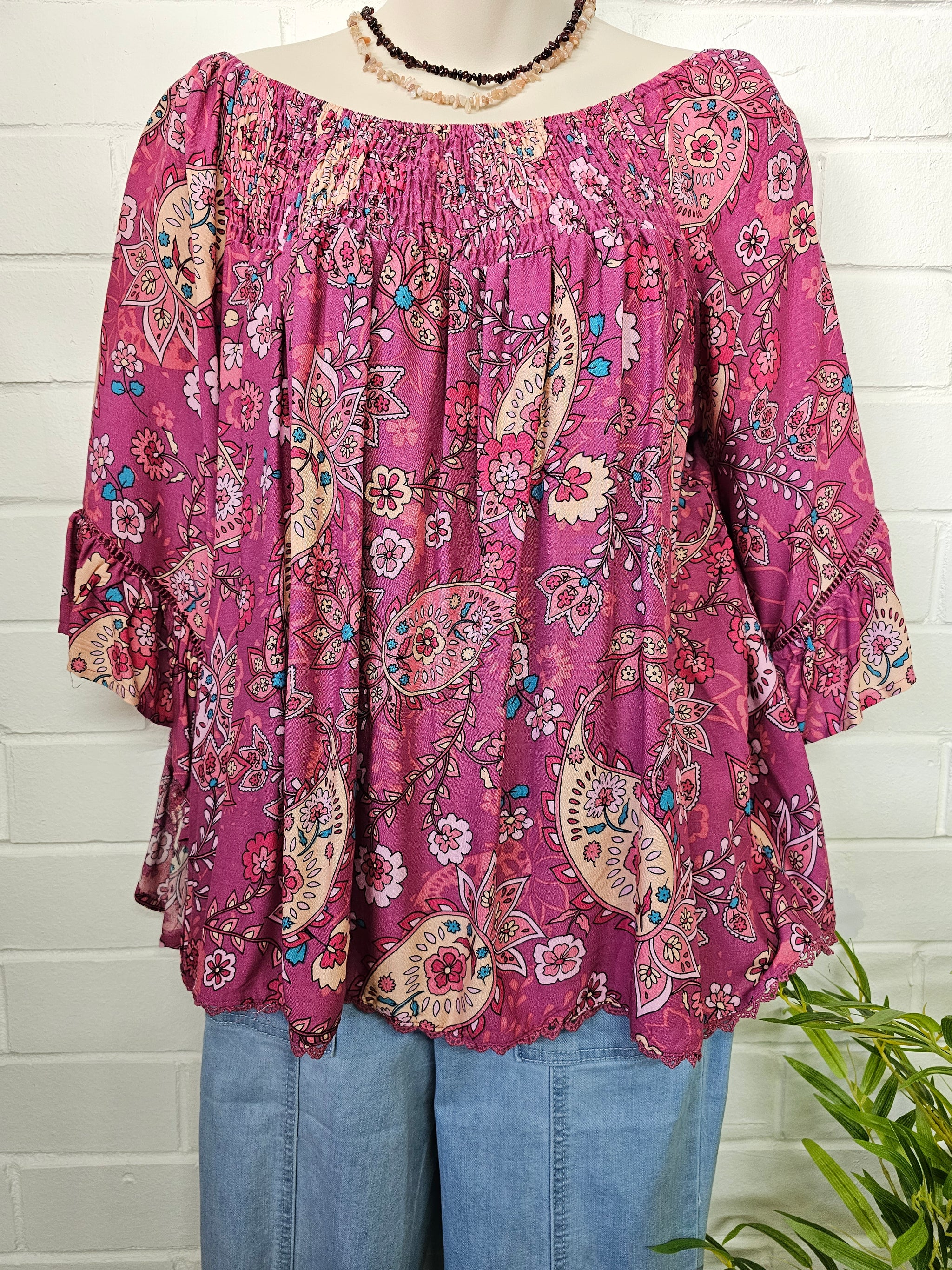 The Jemma Off the Shoulder Top is the perfect summer piece. Made of 100% rayon for...