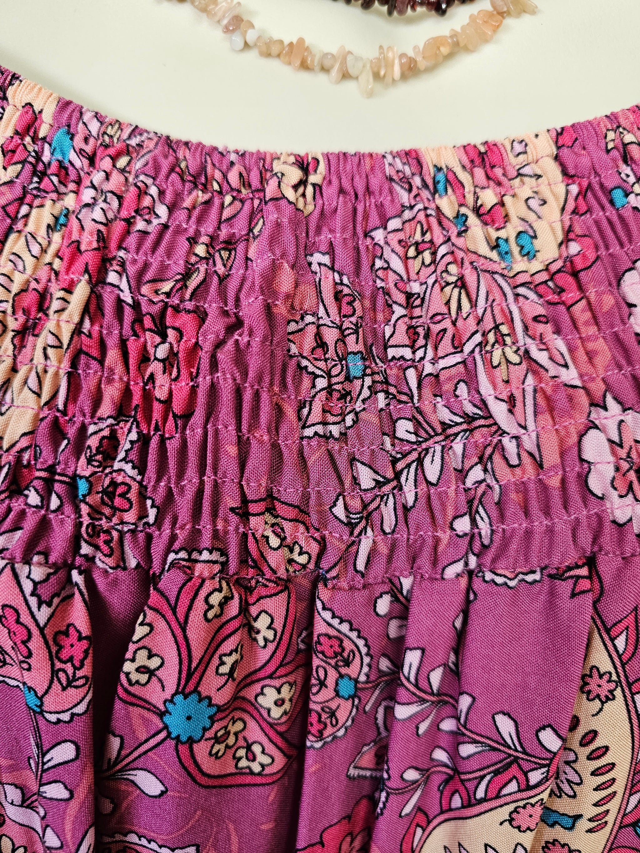 Expertly crafted from soft rayon fabric, the JAVA TOP features a decorative embroidered elastic waist band...